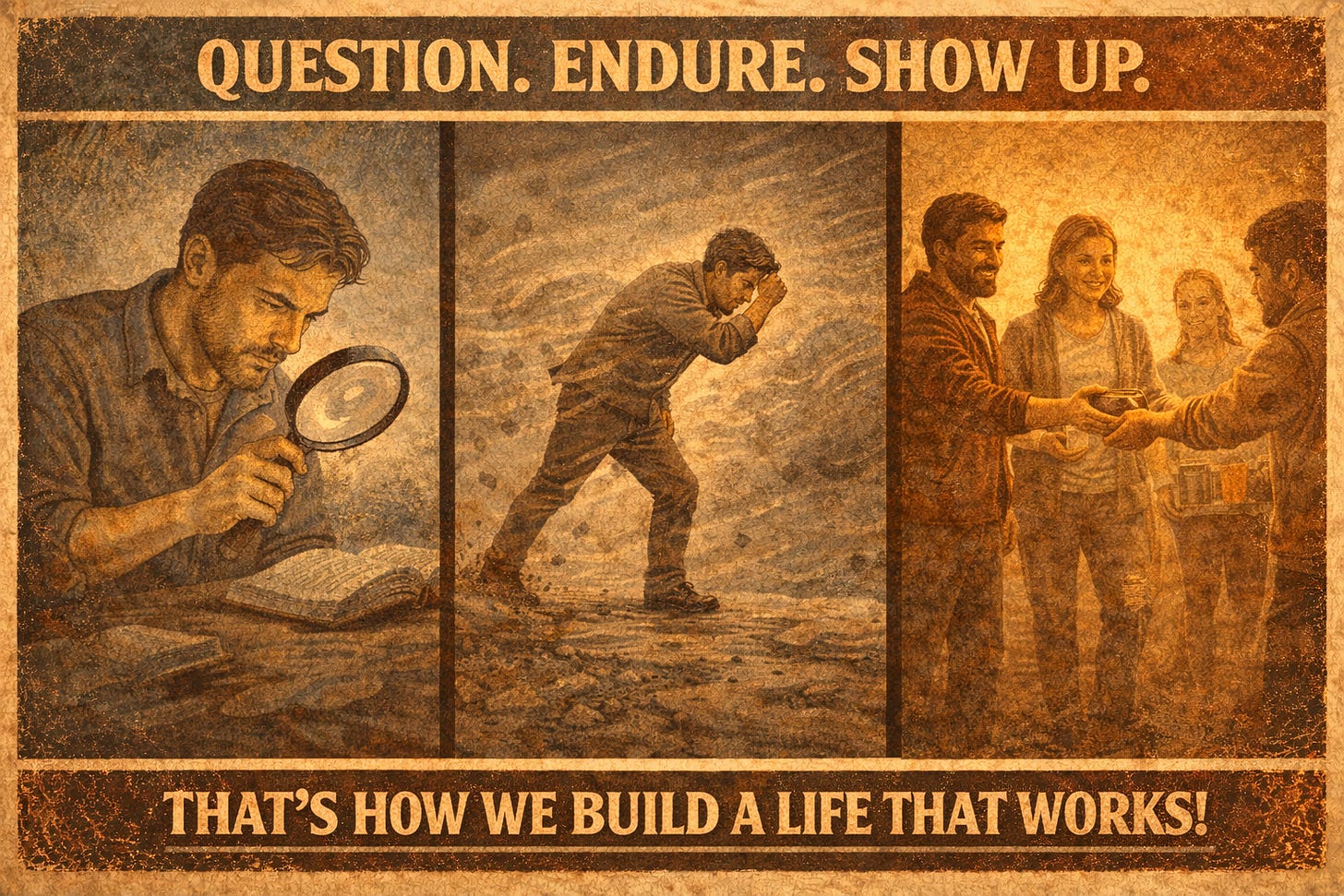 What if the path to a meaningful life isn’t about certainty or comfort, but about how we respond to reality? This week’s readings challenge us to question what we’re told, grow through what we endure, and take responsibility for each other in ways that actually matter.